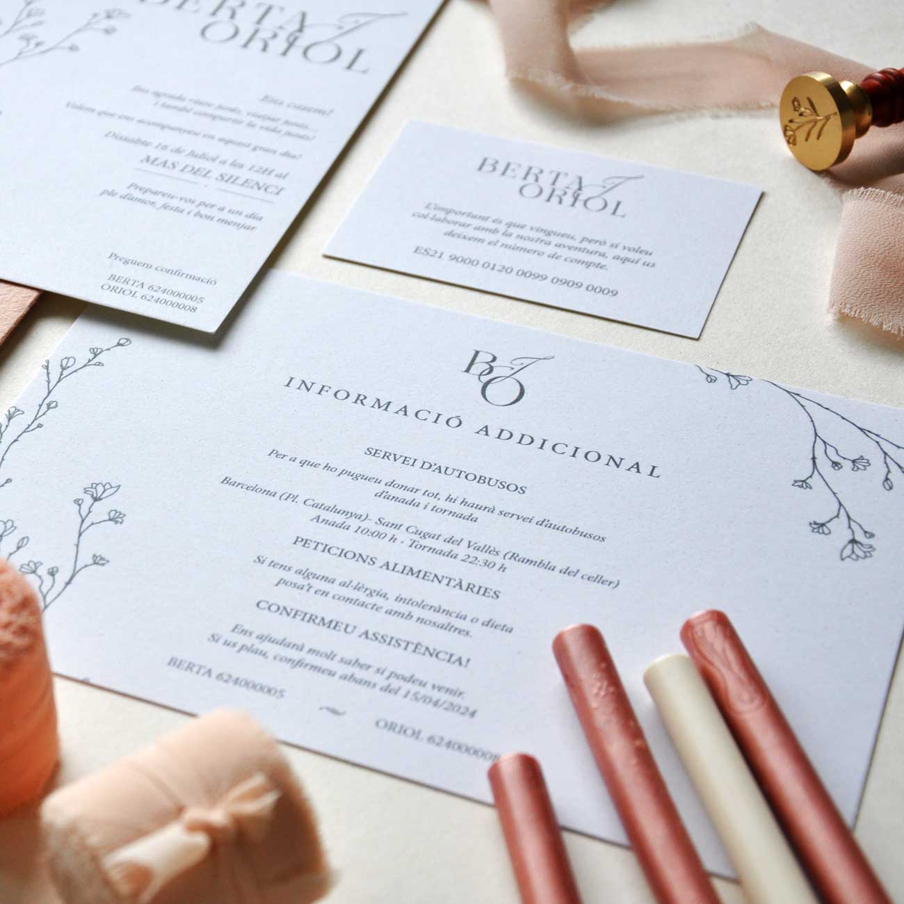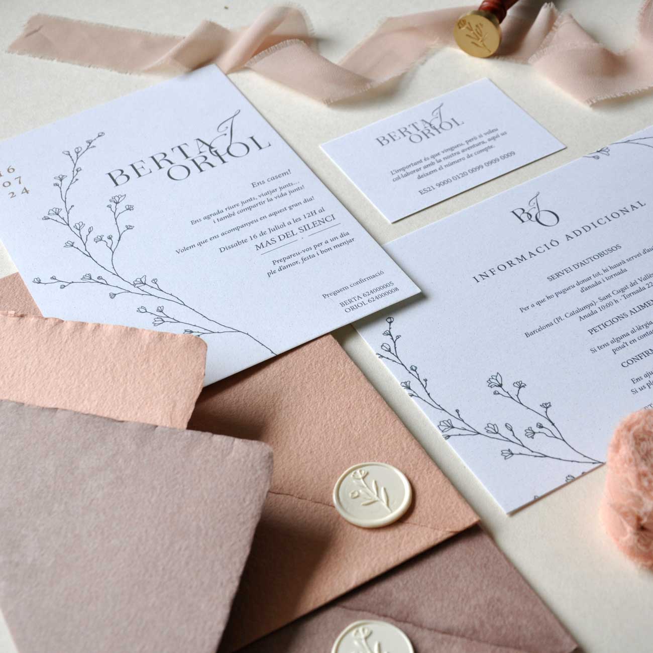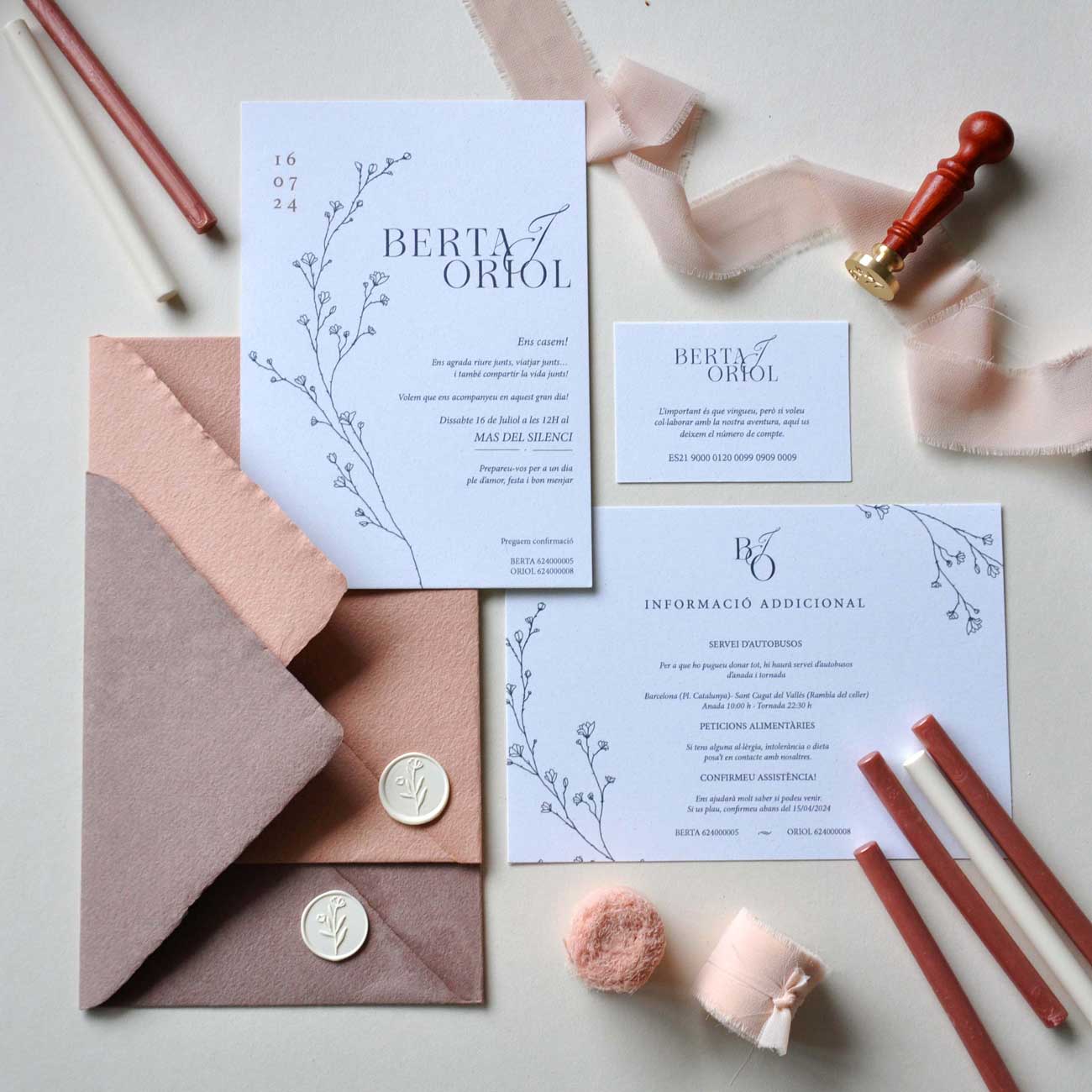 Cada invitación puede personalizarse con todos los elementos de papelería para vuestro gran día a juego.